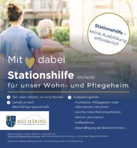 Stationshilfe für unser Wohn- und Pflegeheim gesucht! 20.03.2026 von Sigrid SchneiderTeil- oder Vollzeit, wir sind flexibel